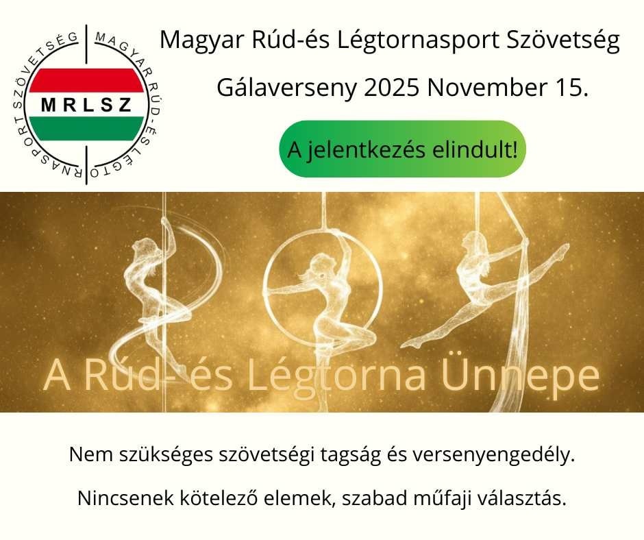 A Magyar Rúd- és Légtornasport Szövetség 2025. november 15-én első alkalommal rendezi meg a Gálaversenyt, amely egy különleges, ünnepélyes esemény a sportág minden szerelmese számára.